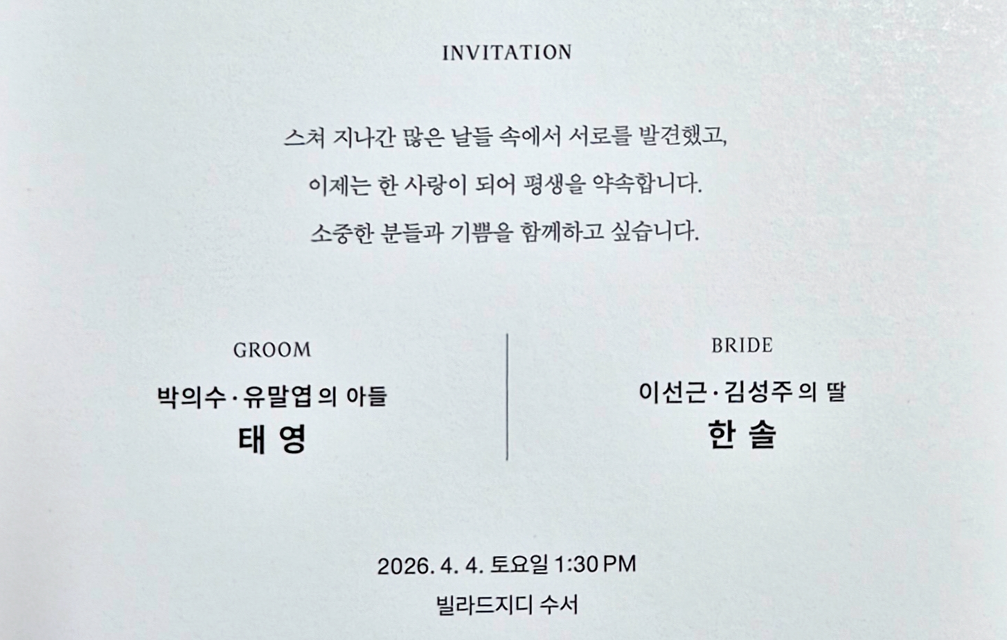 (남해)남도공업사 박의수 대표의 자녀 결혼 알림