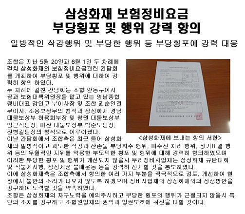 삼성화재 보험정비요금 부당횡포 강력 항의