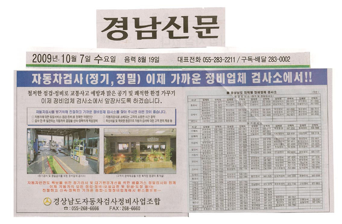 경남신문사 1면 광고 (2009. 10. 7일자)