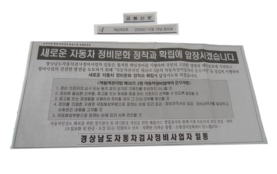 교통신문(2009. 10. 19) 광고