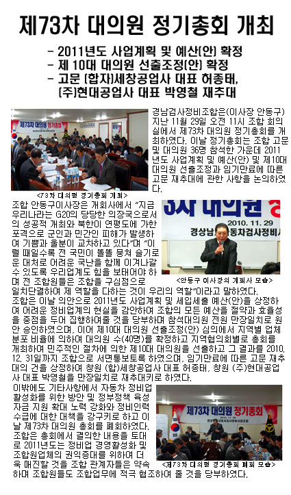 제73차 대의원 정기총회 성료
