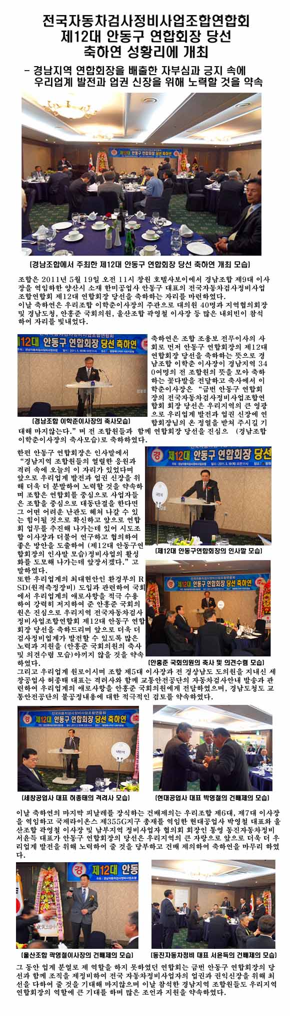 안동구 연합회회장 당선 축하연 성황리에 개최